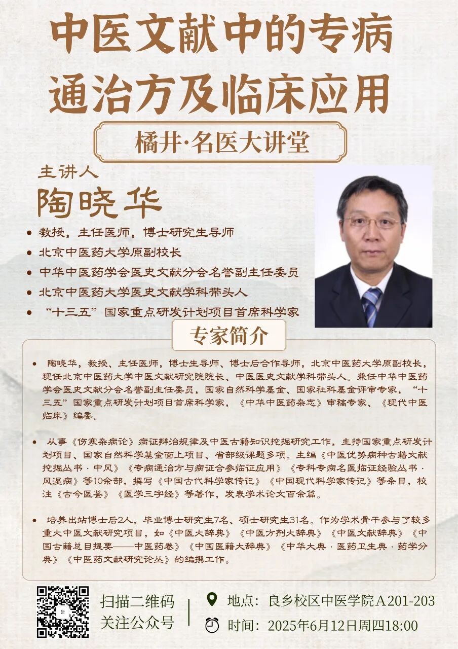 中医文献中的专病通治方及临床应用——橘井·名医大讲堂第六讲
